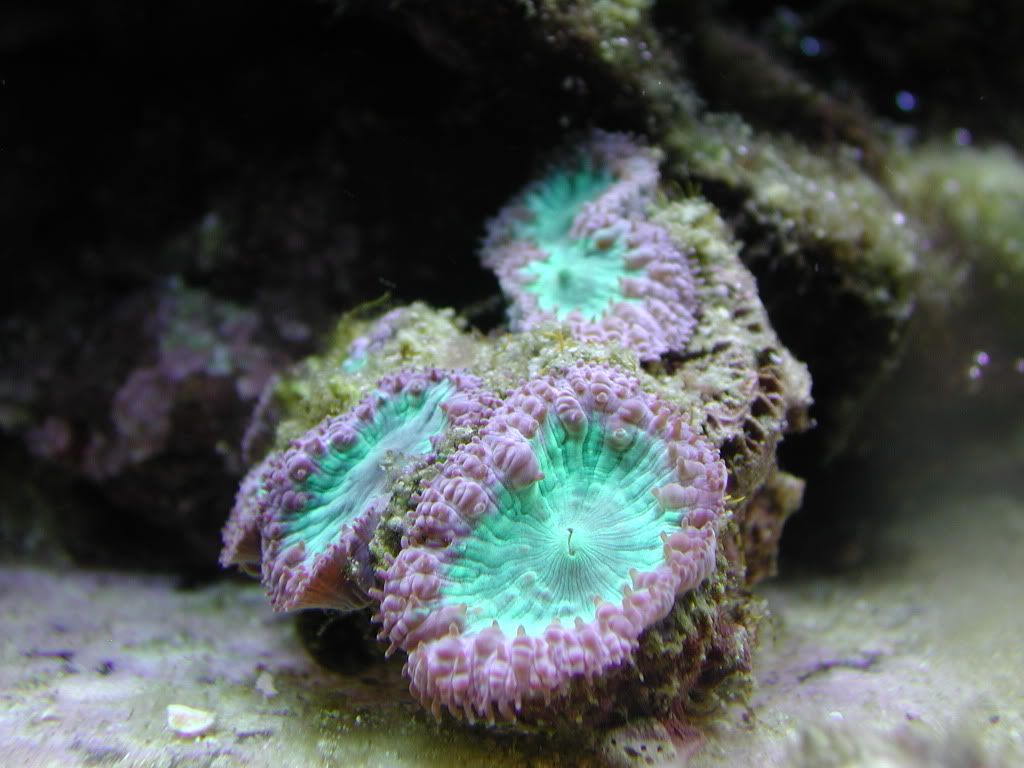Also I don't know whether I posted a pic of my new blastomussa. My friend Rich gave it to me, I guess he didn't want it in his tank anymore. Oh, now I remember, it had an aiptasia on it. Easy to remove and good score for me! It looks like its had a bit of a rough go but its slowly coming back in my tank. I'd sort of like to get it up off the bottom of the tank but as usual, real estate issues come into play.