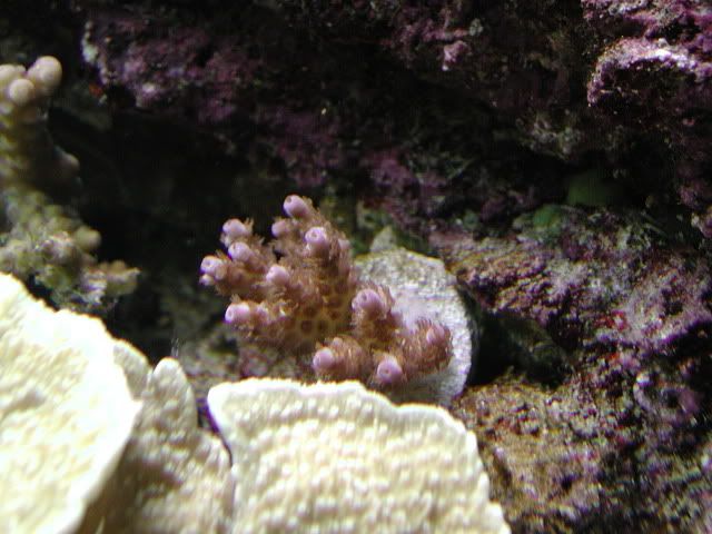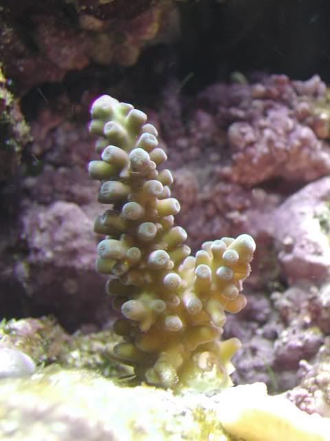 This one is new. I managed to resist it for 3 whole weeks at the store before someone started taking frags off it because it was losing its color. You know you're addicted when you keep thinking about corals all the time. I just couldn't resist it anymore (besides, it was such a nice colony, it was a shame to see it fragged up).